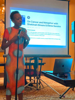 During the meeting, Dr. Martin awarded the Rising Star Award to Dr. Shekinah Elmore, Assistant Professor and Director of the Metastatic Disease Program in the Department of Radiation Oncology at the University of North Carolina at Chapel Hill. A tireless advocate for patient-centered decision-making and equitable access, Dr. Elmore is an internationally recognized researcher working to advance global palliative radiotherapy and develop a patient-centered outcomes research agenda in palliative radiation oncology. Upon accepting her award, Dr. Elmore delivered the keynote presentation, “Equity and Empathy in (Palliative) Oncology Care: Perspectives from a Patient Doctor,” in which she reflected on how her own journey through cancer treatment has informed her role as a radiation oncologist and health services researcher (Figure 1). Following her inspiring presentation, members discussed opportunities to further advance health equity, education, and collaborative research.